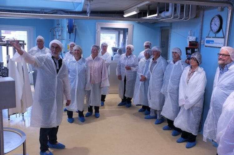 Fein eingekleidet liessen sich die Liberalen in der Einsiedler Milchmanufaktur die Produktionsabläufe erklären.